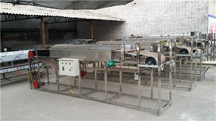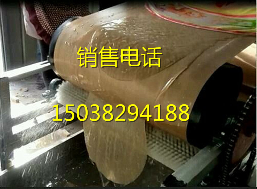 该凉皮机通过生产工艺的调整,不管面浆发与不发,均可生产出表面粗纹起花的仿手工效果的凉皮产品。采用直热式加温,升温快,热源多样化。煤、柴、液化气、均可做燃料。好的模具头设计,不仅可以生产出多种品种的面皮,而且生产中可随时改变所生产面皮的品种和厚度。厚度的调整几秒钟便可以实现,品种的转换半分钟即可实现。我厂家生产鸿睿机械的超大型全自动凉皮擀面皮机,从上浆到出成品到成品加工,实现了全自动。其中与其配套全自动接皮机,与市场上同类产品相比,传动齿轮加厚耐磨,传动链条加粗耐用,且所切出凉皮擀面皮宽度和长度可自由调节,不同于市场上只能切一种宽度和长度的接皮机。产品的稳定性能保障您的顺利生产,生产过程无多余浪费,电加热、蒸汽、燃油、燃气等加热方式可自由选择,更符合你的实际生产需求