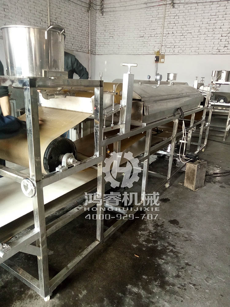 鸿睿全自动凉皮机主要部件采用铝合金和不锈钢,符合食品卫生标准,美观耐用。一个人独立操作,完全妥妥的。利用微电脑数控操作对口感,厚度,都是可以精确把控的调节,并通过调整工艺和温度,可使凉皮表面产生起泡(膨化)、起花纹、表面光亮平整等不同效果,凉皮柔韧软滑,质量好,凉皮产量高。也可根据各地流行口味自由选择操作,多功能 凉皮机 还可做河粉、肠粉、米皮、面皮等米面制品等。购机后生产技术配方也都由厂家提供并且教会您生产,不要在犹豫,有想法就要及时实施,考察后尽快做出决定。
